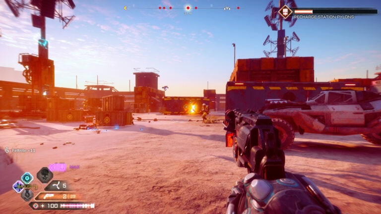 Het blauw gloeiende goedje feltrite speelt een belangrijke rol in het spel. Dat ligt opgeborgen in kisten of komt vrij bij gesneuvelde vijanden en het kapotschieten van generatoren, en het zit in gesteente en de meteorieten die af en toe neerdalen.Met dat handige spul schakel je upgrades vrij, en samen met andere modificaties pas je je arsenaal aan je favoriete speelstijl aan.